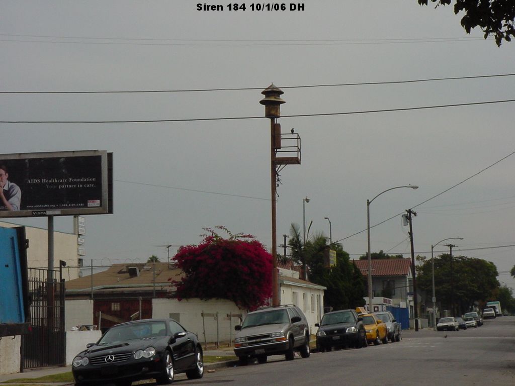 On or about April 25, 2022, the support pole suffered a total failure and the siren crashed to the ground. Here is a YouTube video of it taken by Kim Cooper and Richard Schave: Siren 184